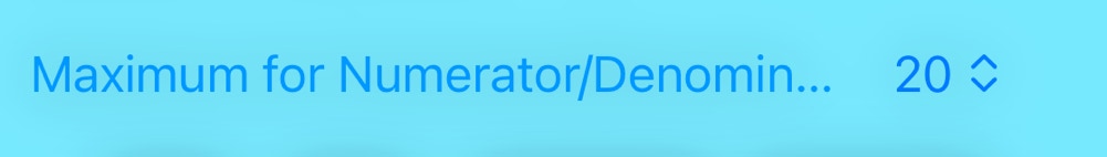 This value must always be at least one step lower than the maximum value for the denominator/numerator of the result. FracEx Calc enforces compliance with this rule.