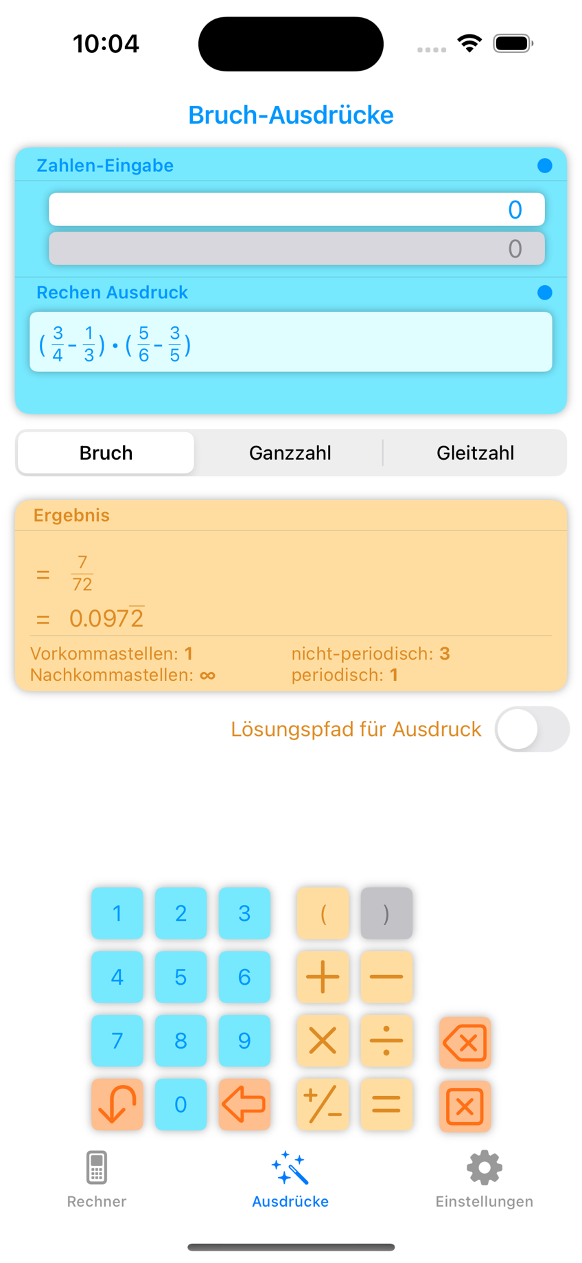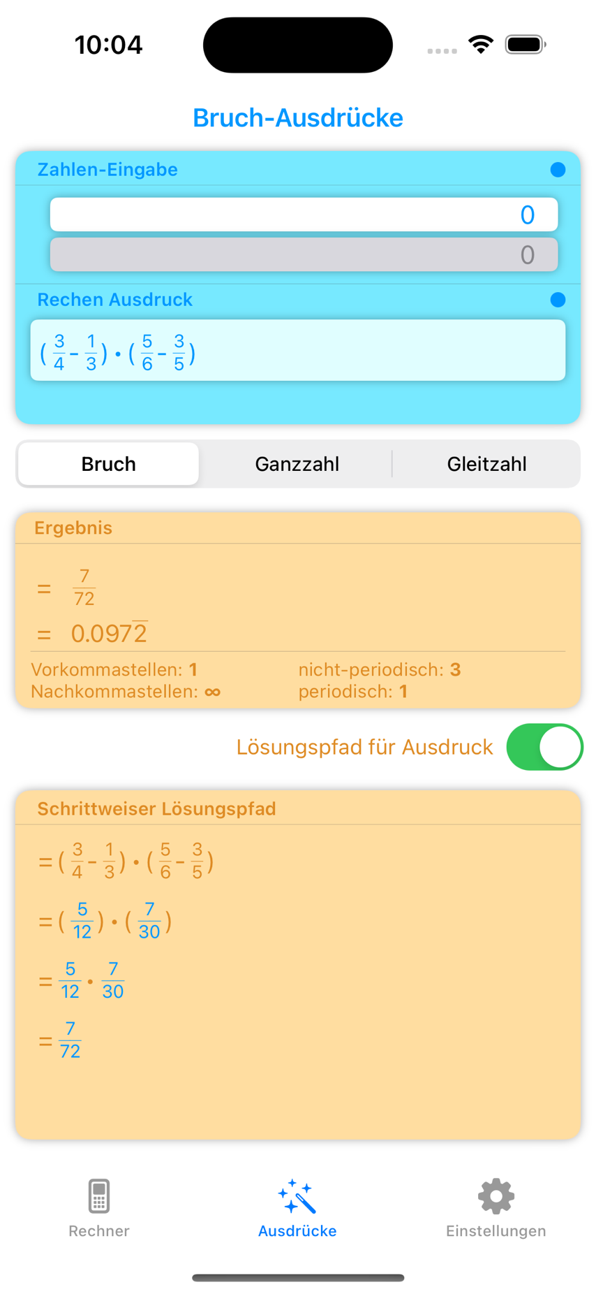 Dank FracEx Calc erhalte ich auch bei komplexeren Berechnungen schnell präzise Ergebnisse in Form von Brüchen sowie als rationale Zahlen.