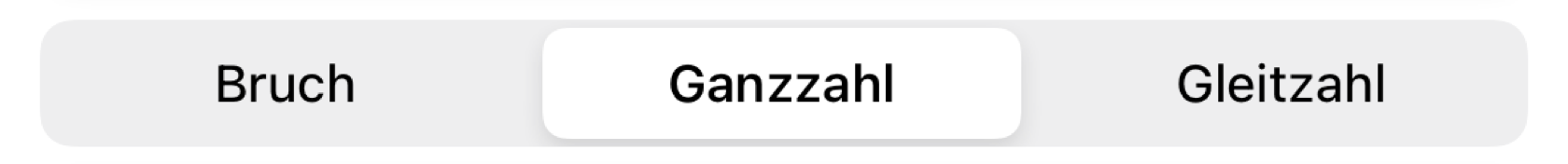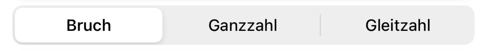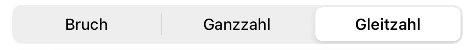 Die Ausgabe von Zahlen erfolgt immer als Bruch, gemischter Bruch und als Gleitkommazahl.