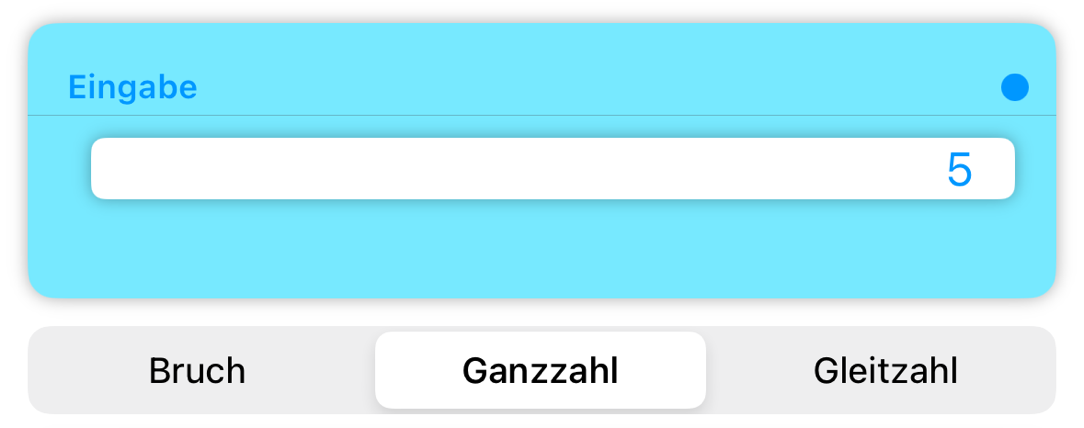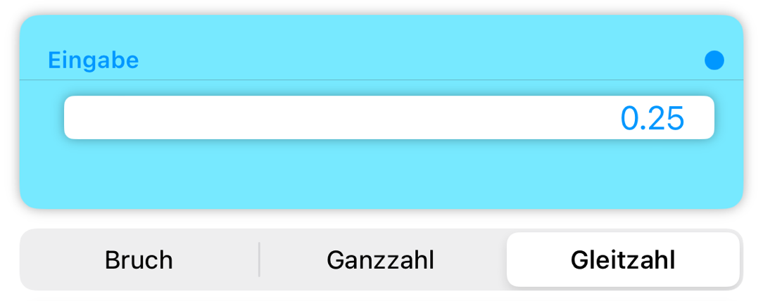 Im Eingabe-Modus für Gleitzahlen wird nur ein Feld für die Zahlen-Eingabe angezeigt.