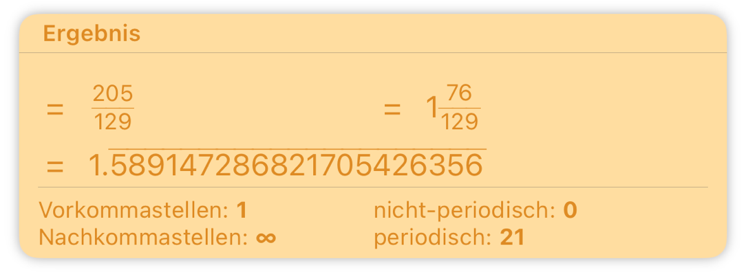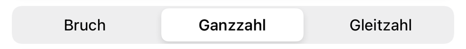 Mit einem Links-/Rechts-Wisch kann durch die Ergebnisausgabe für einen Bruch, einen gemischten Bruch oder eine Gleitzahl gescrollt werden, falls diese zu lang für das Ausgabefeld sind.