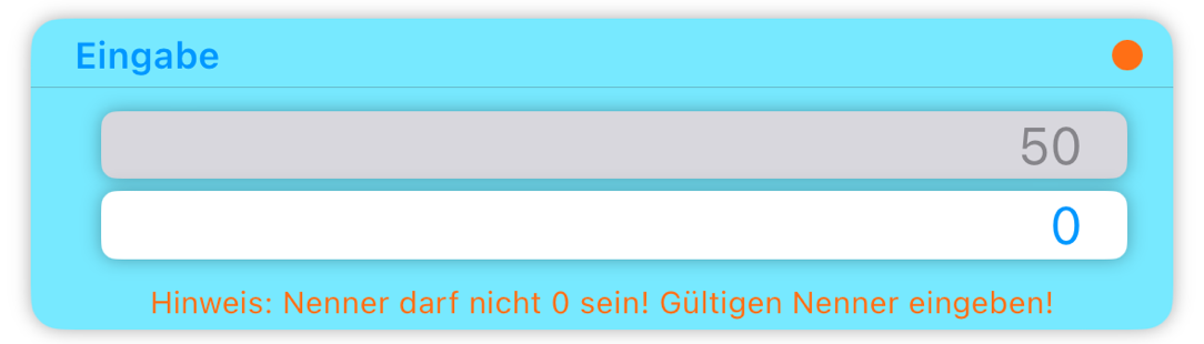 Auf der Zahlen-Eingabe-Karte befindet sich oben rechts ein Status-Indikator, der die Gültigkeit der aktuellen Eingabe angibt.